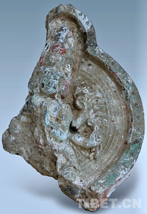 我問小和尚,我可以請一個走嗎?小和尚愣了一下,跑開去問旁邊的大和尚,回來時搬了一個凳子,爬上去幫我拿。他挑了兩塊相對完整一點的殘件給我,我如獲至寶。淡彩的千手觀音,光殘件就有20多公分高,實在是很大尺寸的擦擦?;厝サ穆飞?,怕兩塊寶貝在車里被碰著,我用自己的衣服把它們裹得嚴嚴實實?;氐奖本掀渲幸粔K,送去給了我最最尊敬和喜愛的藏學(xué)老師,和他一起鑒賞,聽他給我解讀。