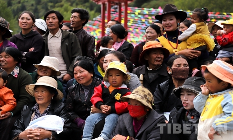 圖為昌都市崗?fù)墟?zhèn)農(nóng)牧民歡聚一堂共慶豐收
